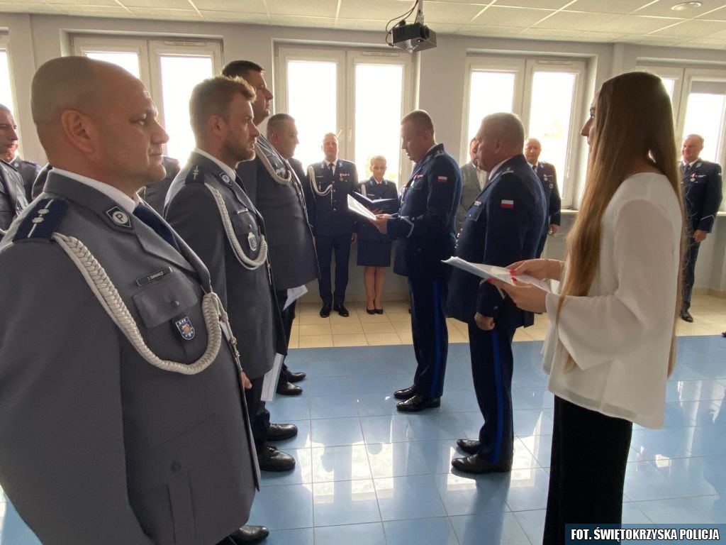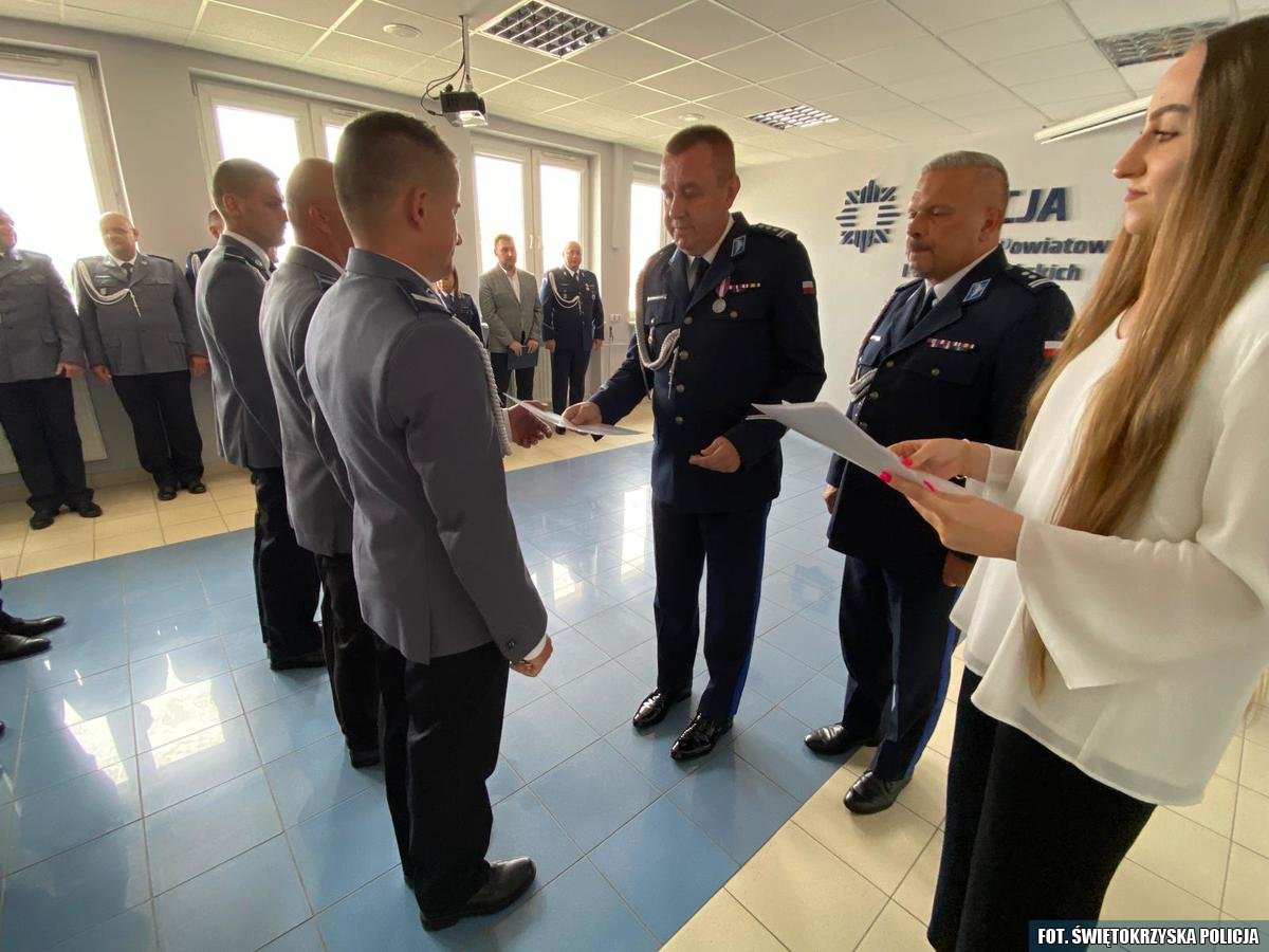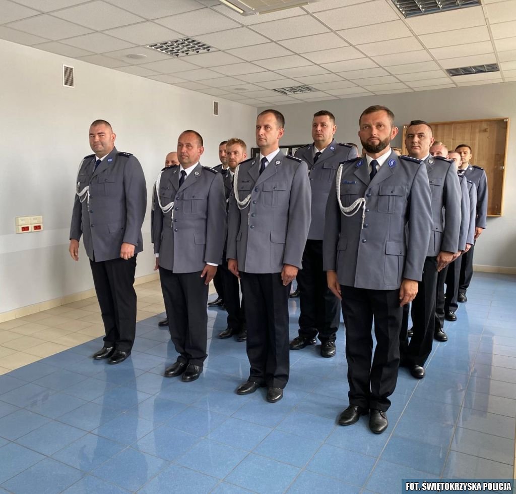 Podczas uroczystości głos zabrał szef koneckich stróżów prawa insp. Mariusz Przyborowski, który przywitał zgromadzonych funkcjonariuszy, a także skierował do nich i pracowników cywilnych serdeczne podziękowania za trud i zaangażowanie, jaki wkładają w codzienną służbę i pracę. Głównym punktem uroczystej zbiorki było wręczenie aktów mianowania na wyższe stopnie policyjne. W tym roku 41 funkcjonariuszy w powiecie koneckim otrzymało awans na wyższy stopień policyjny. Akty mianowania mundurowi otrzymali z rąk Komendanta Powiatowego Policji w Końskich oraz Pierwszego Zastępcy Komendanta Powiatowego Policji w Końskich.