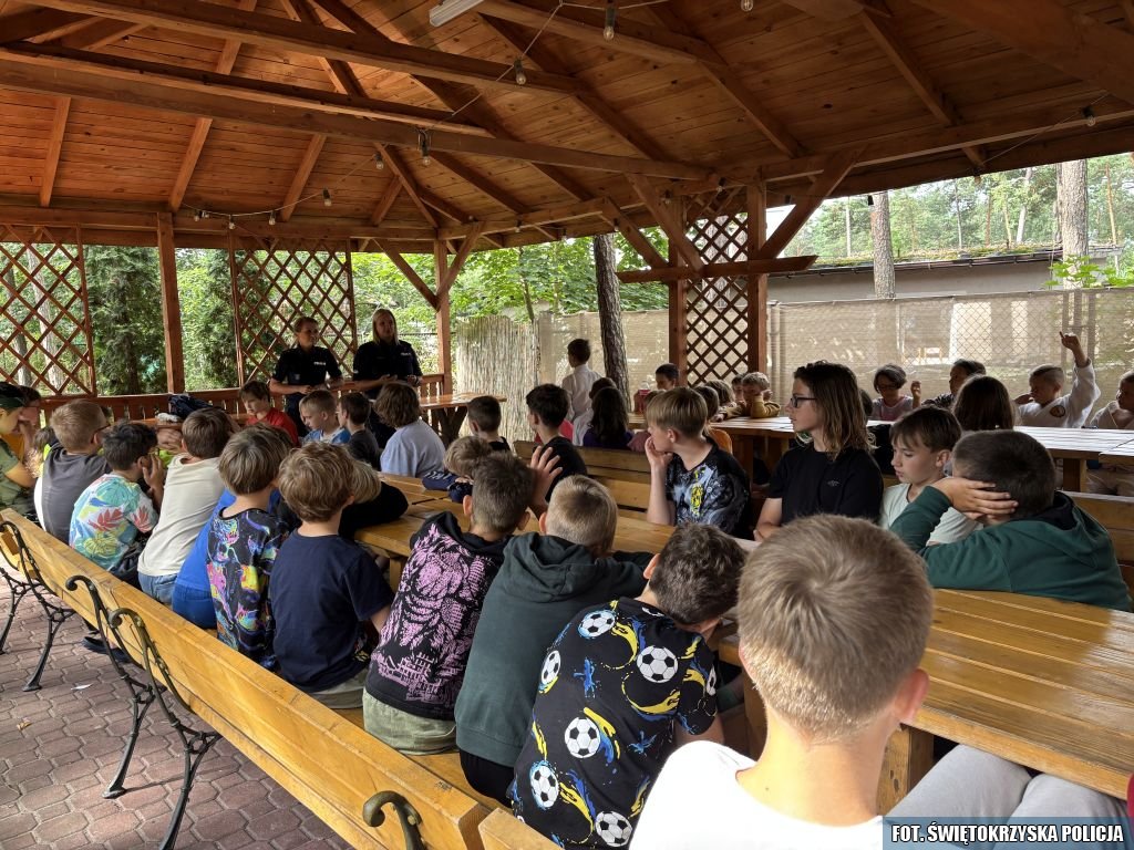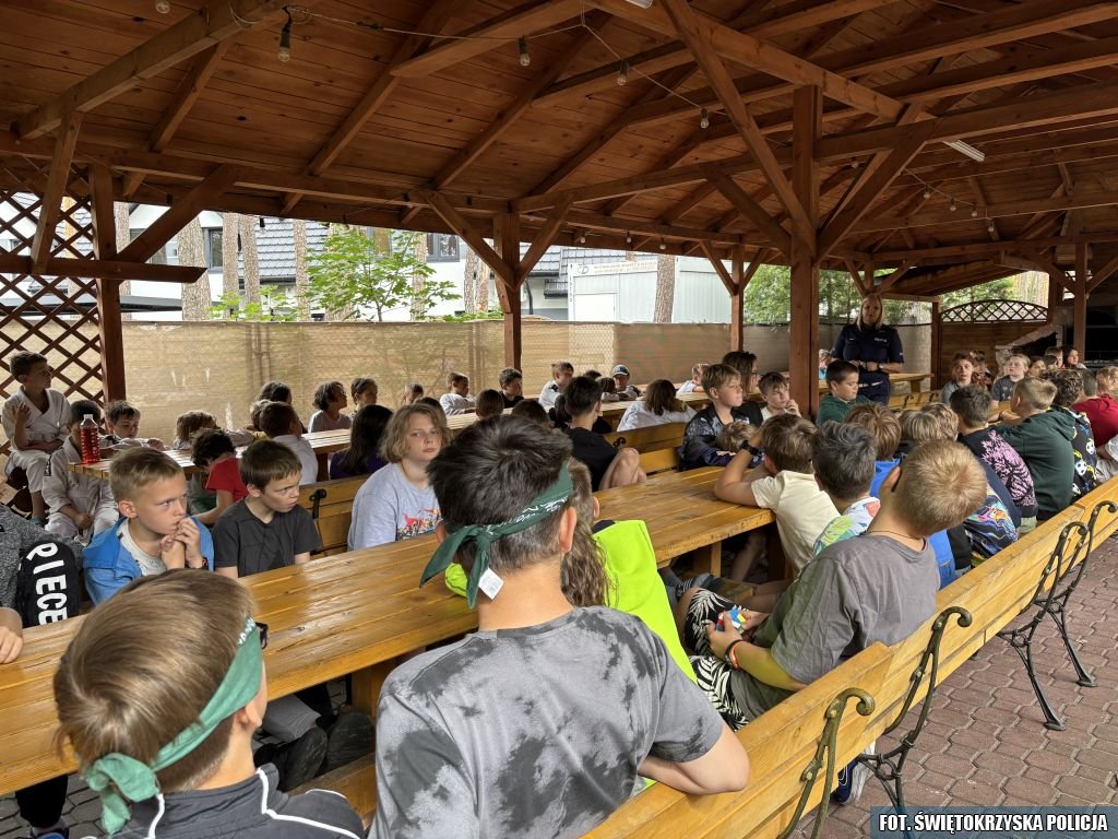 Policjantki z Komendy Powiatowej Policji w Końskich w ramach akcji informacyjno - edukacyjnej „Kręci mnie bezpieczeństwo w lecie” przeprowadziły spotkanie z dziećmi na terenie ośrodka wypoczynkowego w Sielpi . Tematem spotkania było bezpieczeństwo w okresie wakacyjnym.