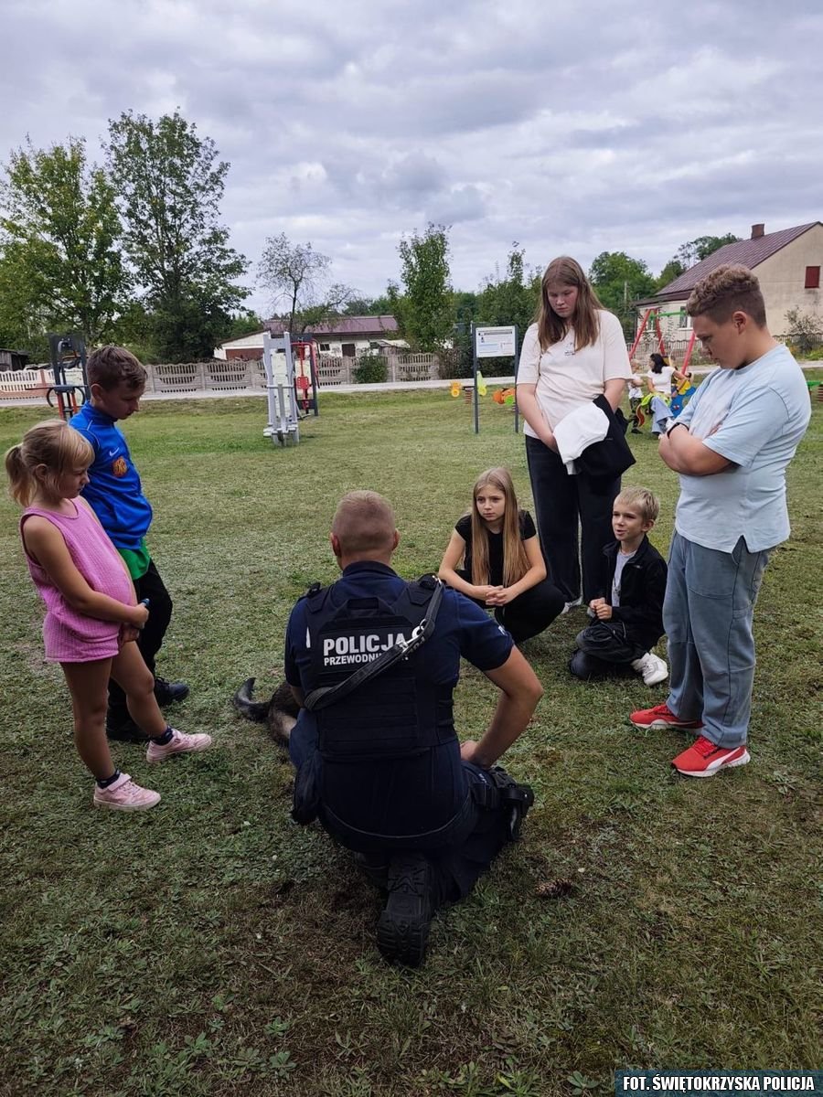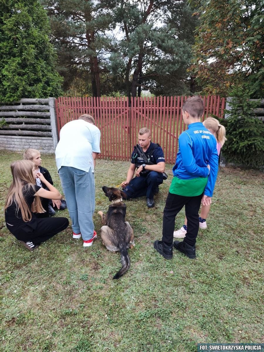 W niedziele funkcjonariusze z Wydziału Prewencji Komendy Powiatowej Policji w Końskich wzięli udział w festynie rodzinnym, który odbył się w miejscowości Gatniki. Najmłodsi uczestnicy wydarzenia mogli zapoznać się z podstawowymi zasadami bezpieczeństwa na drodze, przypomniano również dzieciom numery alarmowe oraz przybliżono tematykę związaną z bezpieczeństwem w domu, a także przestrzegano przed kontaktami z nieznajomymi osobami. Ponadto każdy zainteresowany mógł pozyskać wiele ciekawych informacji dotyczących m.in. Krajowej Mapy Zagrożeń Bezpieczeństwa oraz aplikacji Moja Komenda. Festyn był także świetną okazją do promocji zawodu policjanta, szczególnie dla dorosłych uczestników pikniku. Ponadto podczas wydarzenia dzieci mogły zobaczyć z bliska policyjny radiowóz. W festynie uczestniczył także przewodnik z psem służbowym, który zaprezentował pokaz wyszkolenia czworonoga.