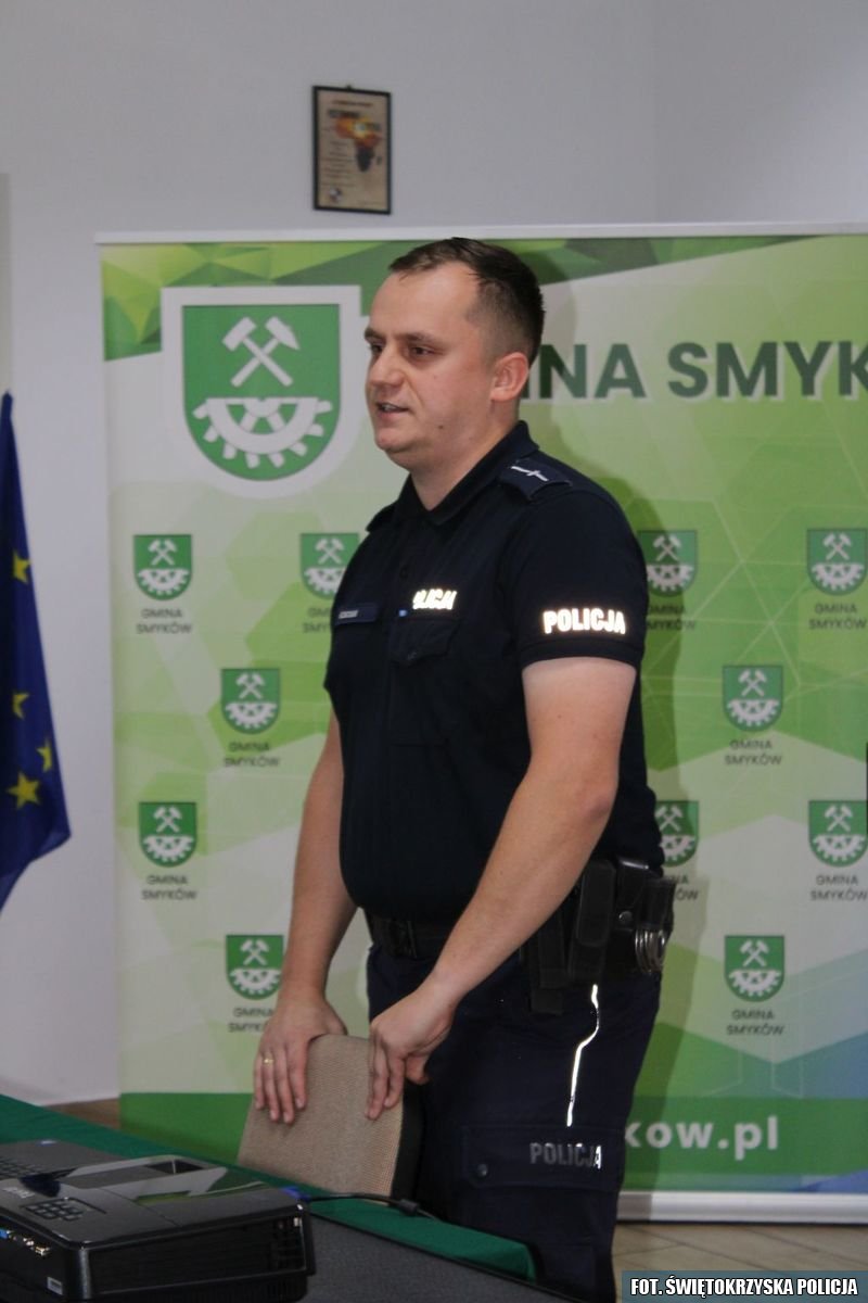 Wczoraj na terenie świetlicy w miejscowości Stanowiskach odbyło się uroczyste spotkanie inaugurujące program „Gmina Przyjazna Seniorm- Ogólnopolska Karta Seniora” w gminie Smyków. Wydarzenie zostało zorganizowane przez Wójta Gminy Smyków oraz Kierownika i pracowników Gminnego Ośrodka Pomocy Społecznej. W wydarzeniu uczestniczyli również policjanci z Komendy Powiatowej Policji w Końskich oraz z Komisariatu Policji w Radoszycach. Podczas wydarzenia dzielnicowy z Komisariatu Policji w Radoszycach mł.asp. Dominik Banak omówił jak przeciwdziałać oszustwom na „wnuczka”, czy też „na policjanta”. Funkcjonariusz przestrzegał, aby być ostrożnym w kontaktach z nieznajomymi w sieci i nie przekazywać im żadnych pieniędzy, kodów BLIK, czy też danych osobowych lub numerów kart kredytowych. Podczas spotkania funkcjonariusze przybliżyli także działanie aplikacji „Moja Komenda” oraz „Krajowa Mapa Zagrożeń Bezpieczeństwa”.