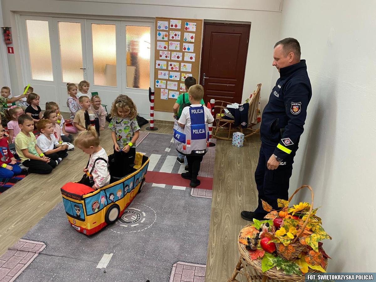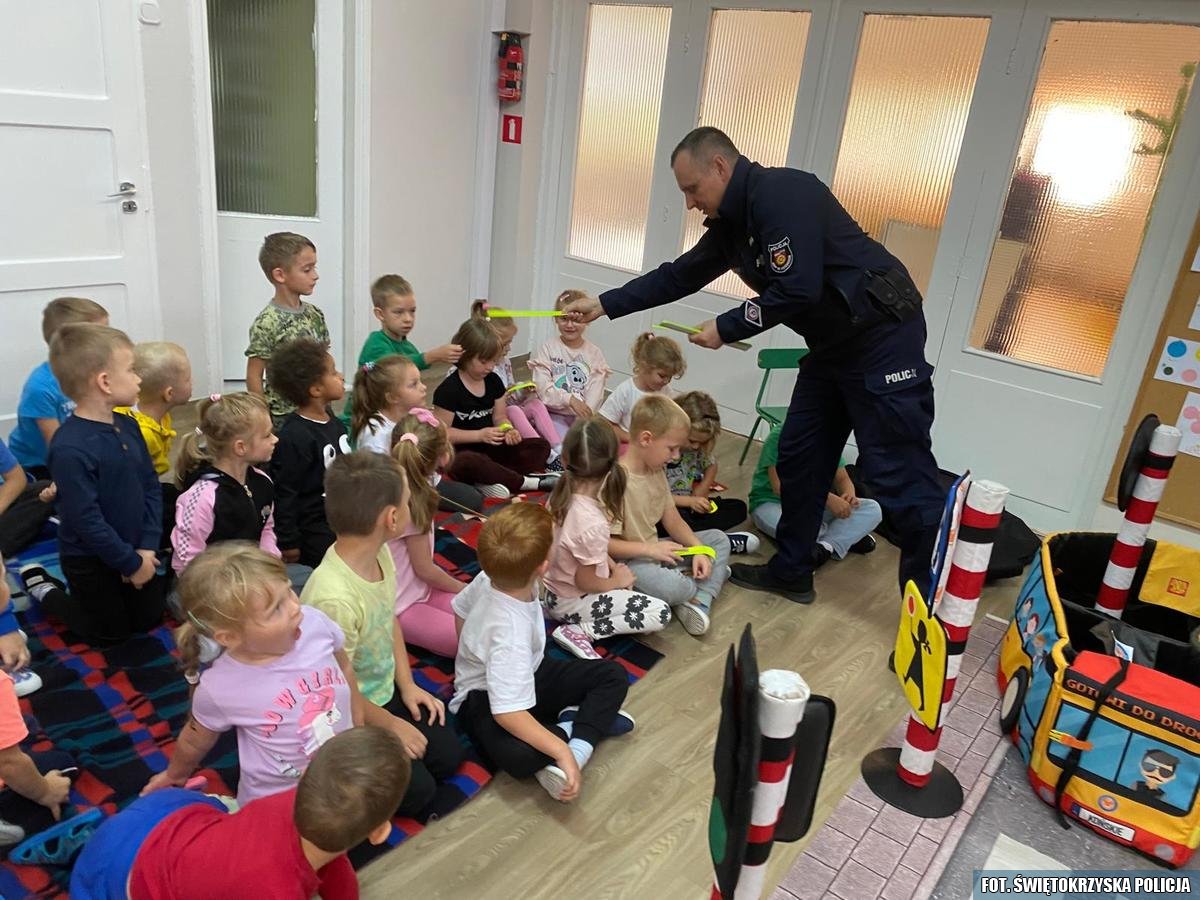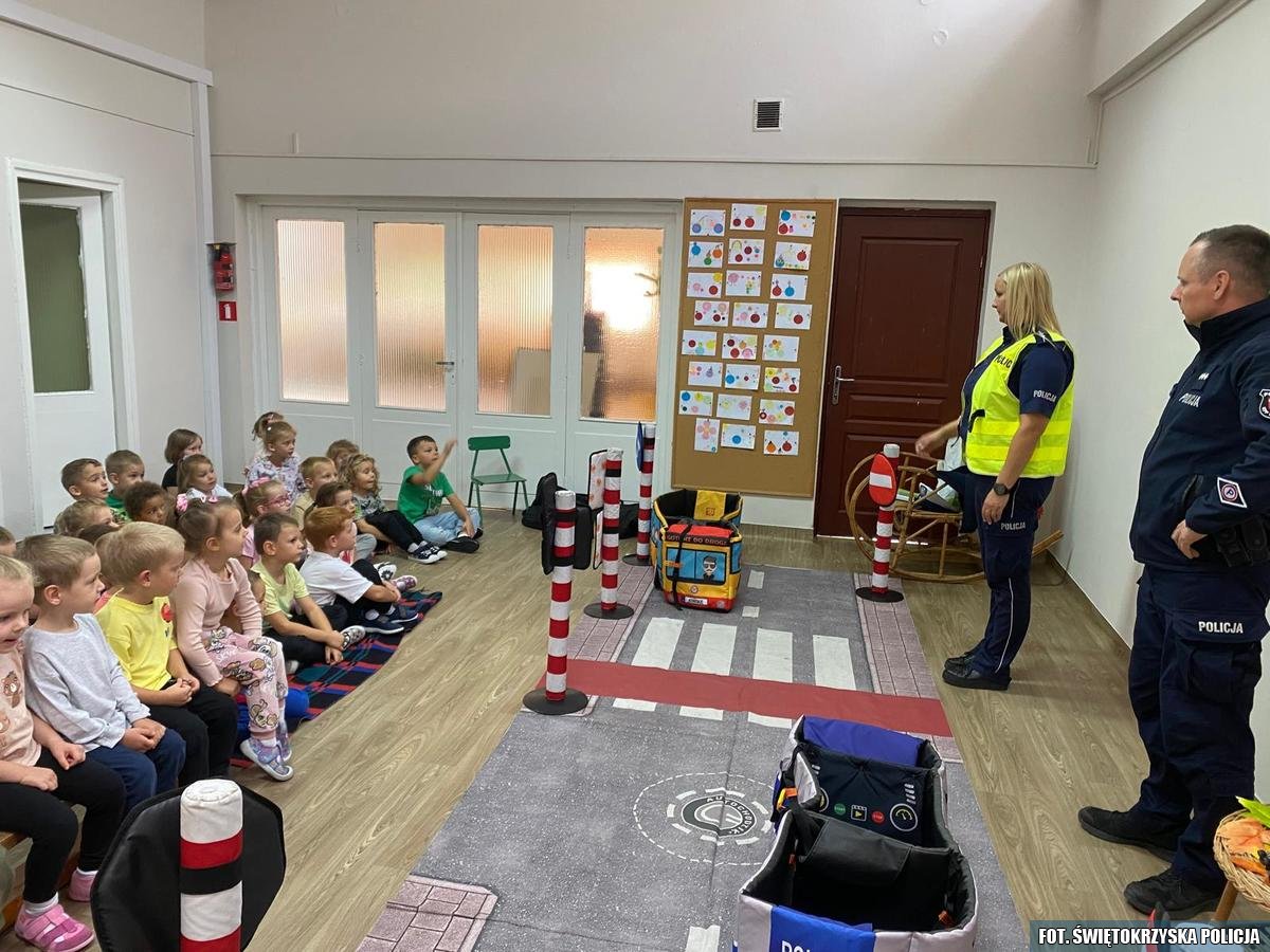Dziś dzielnicowy z Wydziału Prewencji oraz policjanta z Wydziału Ruchu Drogowego Komendy Powiatowej Policji w Końskich udali się do Publicznego Przedszkola nr 3 w Końskich, aby przeprowadzić działania profilaktyczne w ramach ogólnopolskiej akcji " Bezpieczna droga do szkoły”.