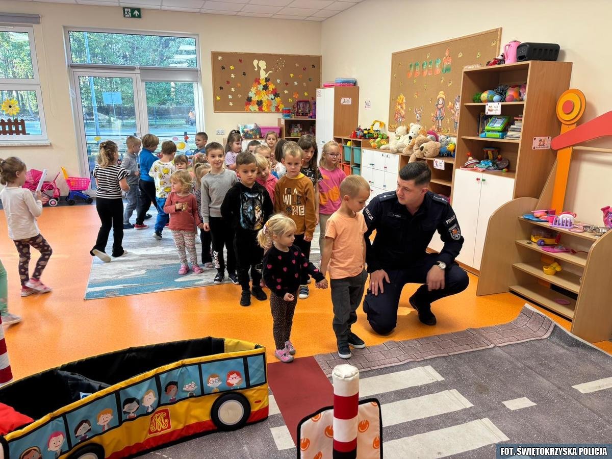 Wczoraj policjanci z Wydziału Prewencji Komendy Powiatowej Policji w Końskich odwiedzili dzieci z Publicznego Przedszkola nr 4 w Końskich oraz przedszkola w Bedlnie. Podczas spotkania policjanci przeprowadzili zajęcia profilaktyczne na temat szeroko rozumianego bezpieczeństwa. Mundurowi omówili z dziećmi podstawowe znaki drogowe, a także przypomnieli jak ważną rolę spełniają elementy odblaskowe. Najmłodsi, przy wykorzystaniu miasteczka ruchu drogowego, mogli przypomnieć sobie zasady bezpiecznego poruszania się po drodze. Policjanci podczas spotkania przybliżyli także tematykę związaną z bezpieczeństwem w domu, a także ostrzegali przed kontaktami z nieznajomymi osobami. Na zakończenie spotkania dzieci otrzymały od policjantów elementy odblaskowe.