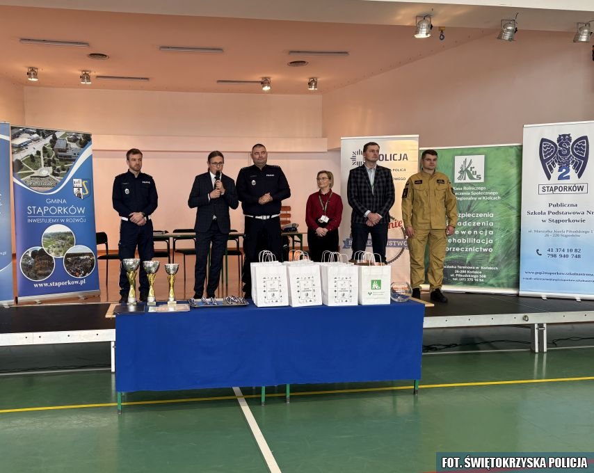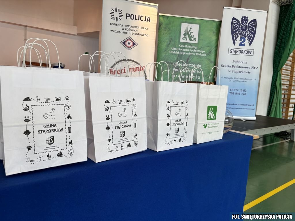 Dziś w Publicznej Szkole Podstawowej nr 2 w Stąporkowie odbył się etap powiatowy XVII edycji turnieju pn. „Bezpieczeństwo na Piątkę”, której organizatorem jest między innymi Komenda Wojewódzka Policji w Kielcach. W konkursie udział brali uczniowie klas piątych z 8 szkół znajdujących się na terenie powiatu koneckiego. Uczniowie musieli wykazać się zarówno wiedzą z zakresu szeroko rozumianego bezpieczeństwa m.in. osobistego, w gospodarstwie rolnym , przepisów ruchu drogowego, ponadto talentem plastycznym na temat „Rowerem, hulajnoga -rozsądnie i bezpiecznie” oraz wiedzą z zakresu udzielania pierwszej pomocy. Turniej prowadzony był pod czujnym okiem policjantów z Komendy Powiatowej Policji w Końskich oraz Przedstawicieli Komendy Powiatowej Państwowej Straży Pożarnej w Końskich oraz przedstawicieli placówki terenowej w Końskich Kasy Rolniczego Ubezpieczenia Społecznego.