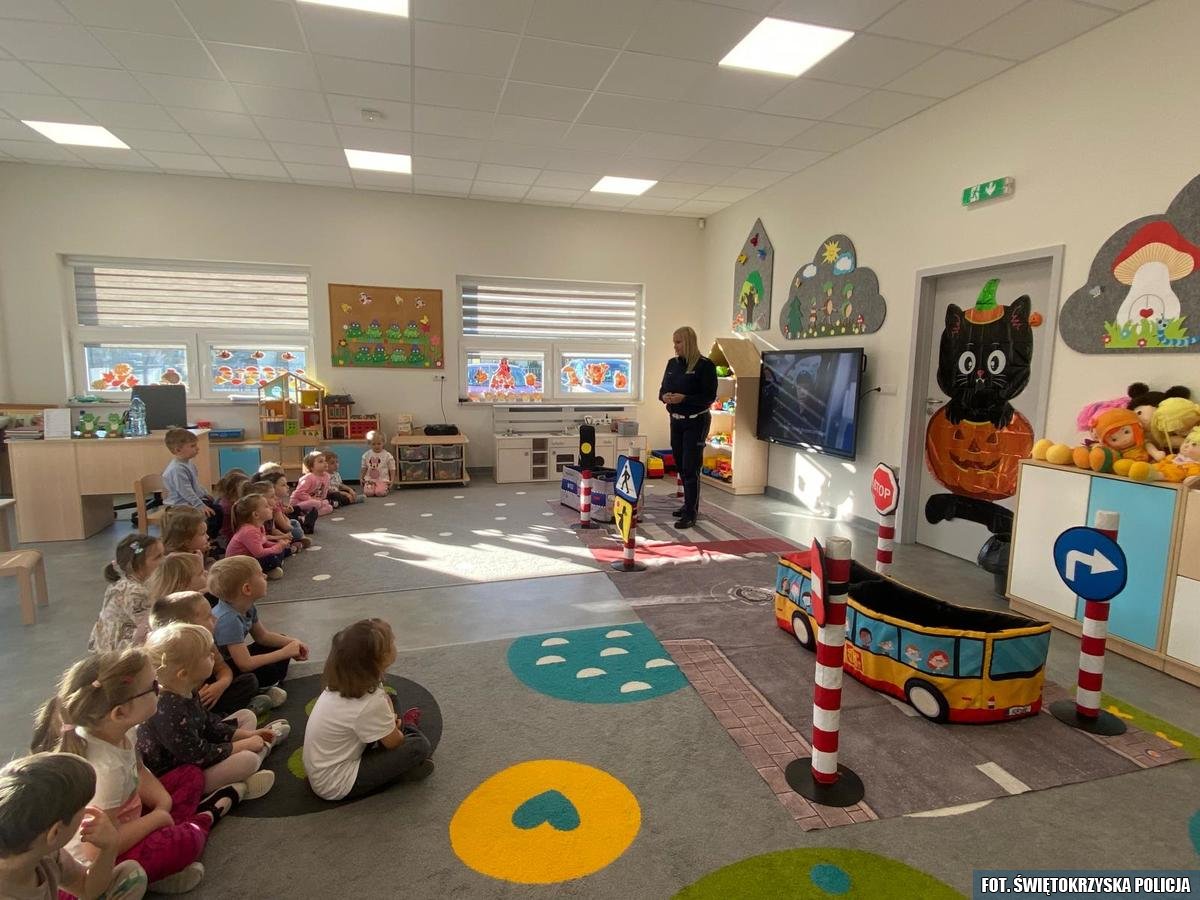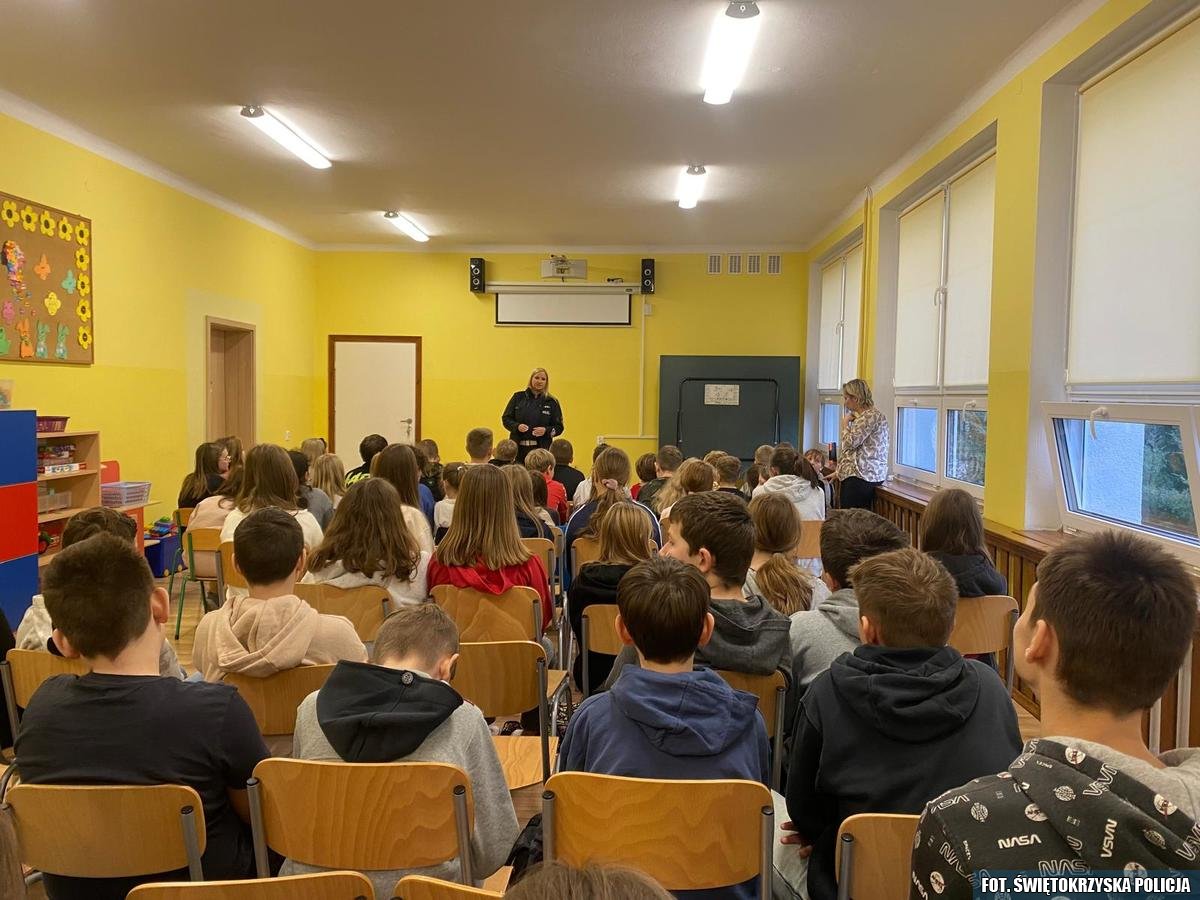 W minioną środę (19.11) w Zespole Placówek Oświatowych Ruda Maleniecka przeprowadzono spotkanie profilaktyczne w ramach trwającej akcji informacyjno-edukacyjnej skierowanej do pieszych pn. „Świeć Przykładem – Noś odblaski”. Podczas spotkania mundurowa omówiła m.in. zasady bezpiecznego korzystania z dróg, w tym jak bezpiecznie przechodzić przez przejście dla pieszych z sygnalizacją świetlną oraz przez te bez sygnalizacji oraz podstawowe znaki drogowe, a także przypomniała jak ważną rolę spełniają elementy odblaskowe. Podczas spotkania uczniowie mogli dowiedzieć się również jak hejt i mowa nienawiści wpływa na relacje z rówieśnikami oraz czym jest tolerancja i dlaczego jest ona tak ważna w codziennym życiu. Przedszkolaki , zaś przy wykorzystaniu miasteczka ruchu drogowego, mogli przypomnieć sobie zasady bezpiecznego poruszania się po drodze. Policjantka podczas spotkania przybliżyły także tematykę związaną z bezpieczeństwem w domu, a także ostrzegały przed kontaktami z nieznajomymi osobami.