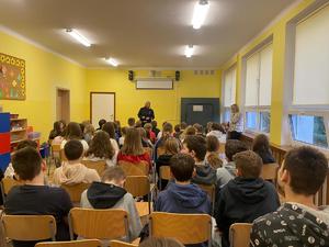Policjantka z Komendy Powiatowej Policji w Końskich, w ramach akcji informacyjno-edukacyjnej skierowanej do pieszych pn. „Świeć Przykładem – Noś odblaski”, przeprowadziła dziś spotkanie profilaktyczne w Szkole Podstawowej w Rudzie Malenieckiej na temat szeroko pojętego bezpieczeństwa.
