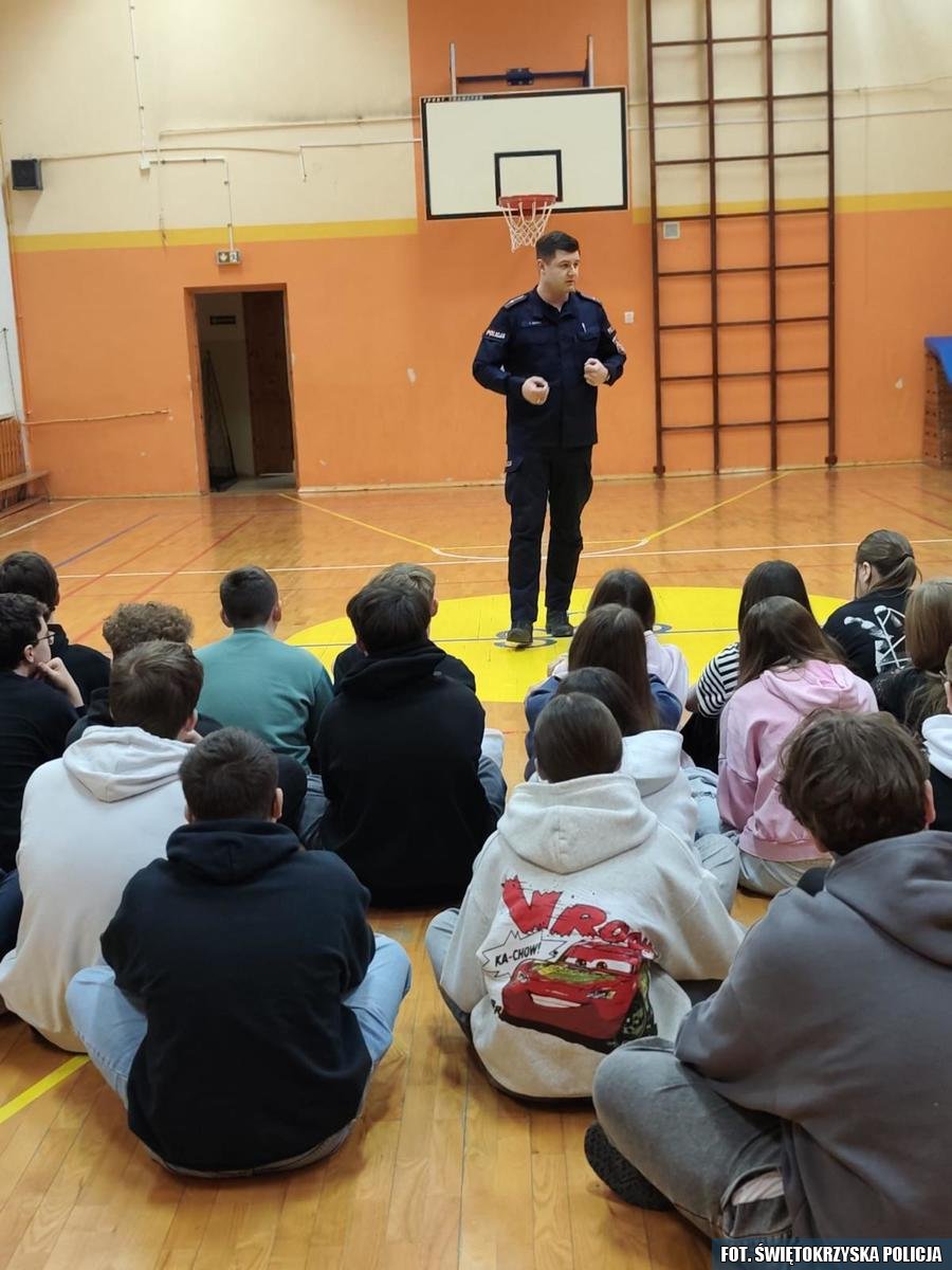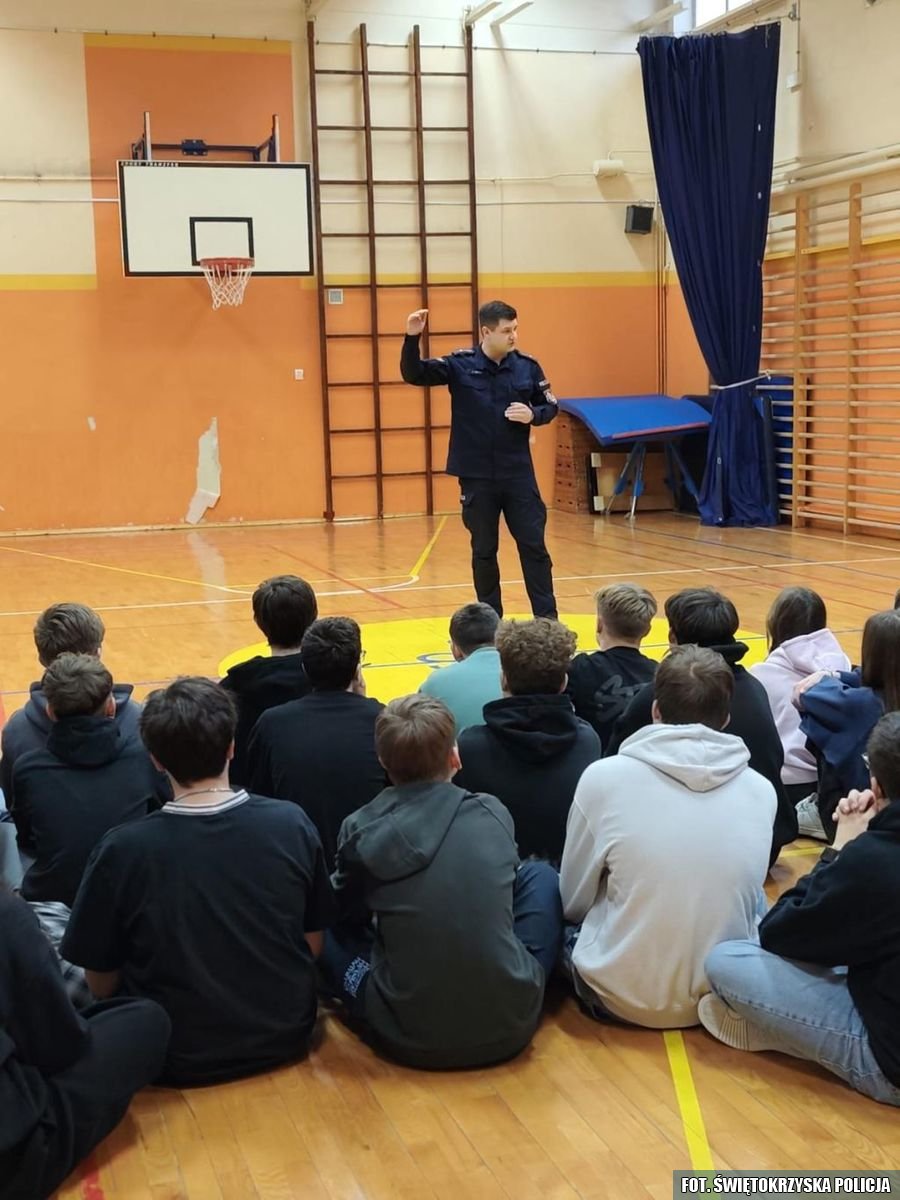 Wczoraj policjanci z wydziału prewencji koneckiej komendy przeprowadzili spotkania profilaktyczne z uczniami ze Szkoły Podstawowej nr 2 w Końskich oraz z Zespołu Szkół Ponadpodstawowych nr 2 w Końskich, podczas których przekazali młodzieży najważniejsze informacje związane z odpowiedzialnością karną nieletnich, w przypadku konfliktu z prawem oraz omówili środki wychowawcze stosowane przez Sąd wobec nieletnich dopuszczających się czynów karalnych. Podczas spotkania policjanci informowali również, jak rozpoznawać i reagować na różne formy przemocy. Słuchacze usłyszeli o niebezpieczeństwach płynących z niewłaściwego korzystania z internetu. Mundurowi mówili o zasadach, którymi powinni kierować się młodzi ludzie korzystający z różnego rodzaju grup społecznościowych. Wśród poruszonych tematów nie zabrakło także informacji dotyczących hejtu i mowy nienawiści oraz tolerancji.