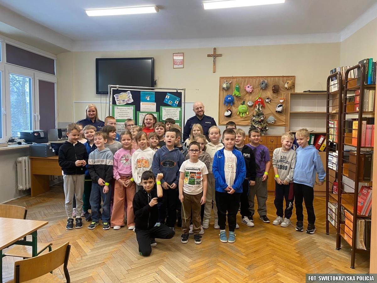 Policjanci z Wydziału Ruchu Drogowego oraz Prewencji Komendy Powiatowej Policji w Końskich w ramach działań profilaktyczno - edukacyjnych „Bezpieczne Ferie” i „Kręci mnie bezpieczeństwo w zimie” odwiedzili Zespół Placówek Oświatowych w Kazanowie, Dziebałtowie , Pomykowie oraz Rogowie. W związku zbliżającymi się feriami zimowymi przypomniano o podstawowych zasadach bezpieczeństwa. Koneccy stróże prawa rozmawiali z najmłodszymi o tym, jak bezpiecznie korzystać z sanek oraz jak stosowanie się do zaleceń dotyczących bezpiecznej zabawy na świeżym powietrzu. Przestrzegali przed wchodzeniem na zmarznięte jeziora i zbiorniki wodne. W czasie spotkania nie zabrakło rozmów o bezpiecznym zachowaniu w ruchu drogowym. Omówiono również tematykę związaną z bezpieczeństwem w domu, a także ostrzegano przed kontaktami z nieznajomymi osobami. Na koniec spotkania dzieci otrzymały elementy odblaskowe oraz słodki poczęstunek