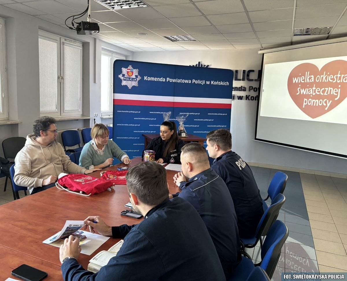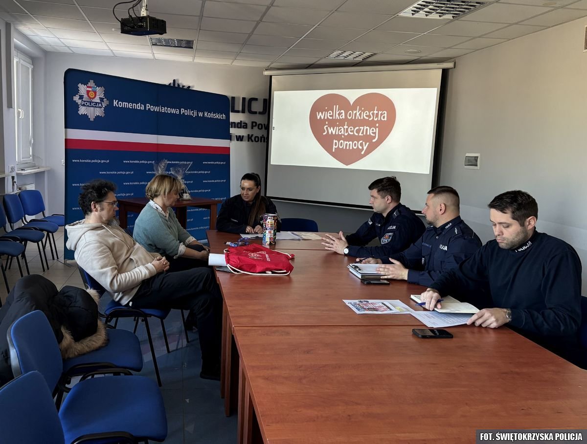 Dziś w Komendzie Powiatowej Policji w Końskich odbyło się spotkanie z przedstawicielami sztabów, aby omówić podstawowe zasady związane z bezpiecznym kwestowaniem. Ponadto w imieniu Komendanta Powiatowego Policji w Końskich mł. insp. Krzysztofa Panaszewskiego, Naczelnik Wydziału Prewencji nadkom. Sylwia Sobczyńska przekazała do sztabu w Koneckim Centrum Kultury oraz do Centrum Kultury i Aktywności Lokalnej w Gowarczowie WOŚP maskotkę koneckiej Policji „Sierżanta Kuca” oraz filiżankę z logo tutejszej jednostki. Środki z ich licytacji zasilą charytatywną zbiórkę Wielkiej Orkiestry Świątecznej Pomocy.