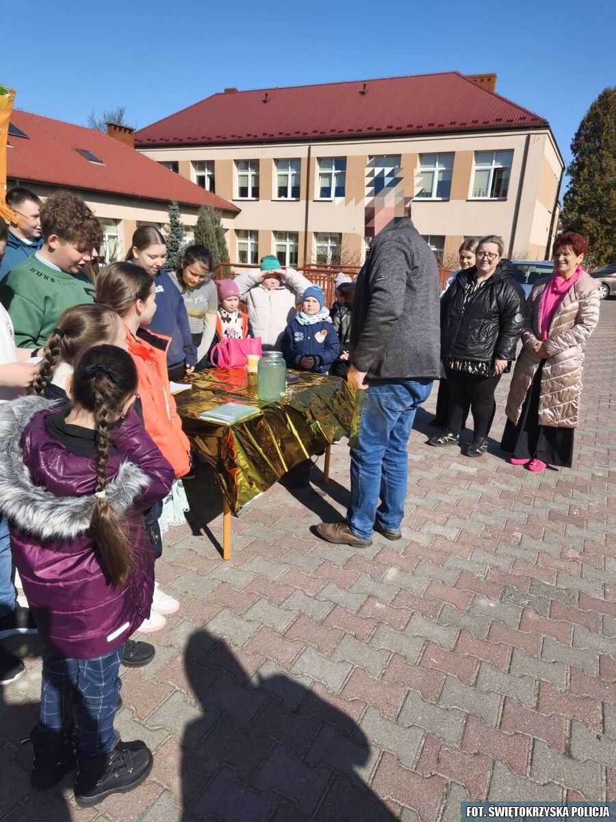 Wczoraj policjantki z Wydziału Ruchu Drogowego koneckiej drogówki włączyły się do działań profilaktycznych zorganizowanych przez nauczycieli i uczniów z Publicznej Szkoły Podstawowej im. Henryka Sienkiewicza w Czermnie. Profilaktyczną akcję zorganizowały pedagog szkolny Pani Anna Smołuch, pedagog specjalny Katarzyna Sambor oraz wychowawca klasy VI Marzena Marczyk. W ramach akcji „Cytrynka za mandat”- kierowcy, którzy dopuścili się nieznacznego przekroczenia prędkości w rejonie szkoły, mogli w ramach wyrażenia skruchy uniknąć mandatu kosztując plaster cytryny. Ponadto z kontrolowanymi kierowcami uczniowie wspólnie z policjantkami przeprowadzali rozmowę w zakresie przypomnienia im o konieczności przestrzegania przepisów ruchu drogowego. Podczas działań profilaktycznych kilku kierowców skorzystało z opcji zjedzenia plasterka cytryny, dzięki czemu uniknęli mandatu.