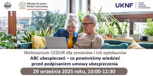 Serdecznie zapraszamy seniorów oraz ich opiekunów do wzięcia udziału w webinarium CEDUR „ABC ubezpieczeń – co powinniśmy wiedzieć przed podpisaniem umowy ubezpieczenia". Webinarium odbędzie się 29 września 2025 roku w godz. 10:00 do 11:30.