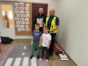 Dziś dzielnicowy z Wydziału Prewencji oraz policjanta z Wydziału Ruchu Drogowego Komendy Powiatowej Policji w Końskich udali się do Publicznego Przedszkola nr 3 w Końskich, aby przeprowadzić działania profilaktyczne w ramach ogólnopolskiej akcji " Bezpieczna droga do szkoły”.